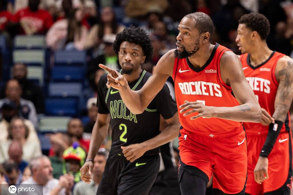 火箭队首发:阿尔佩伦-申京、小贾巴里-史密斯、凯文-杜兰特、阿门-汤普森、里德-谢泼德
